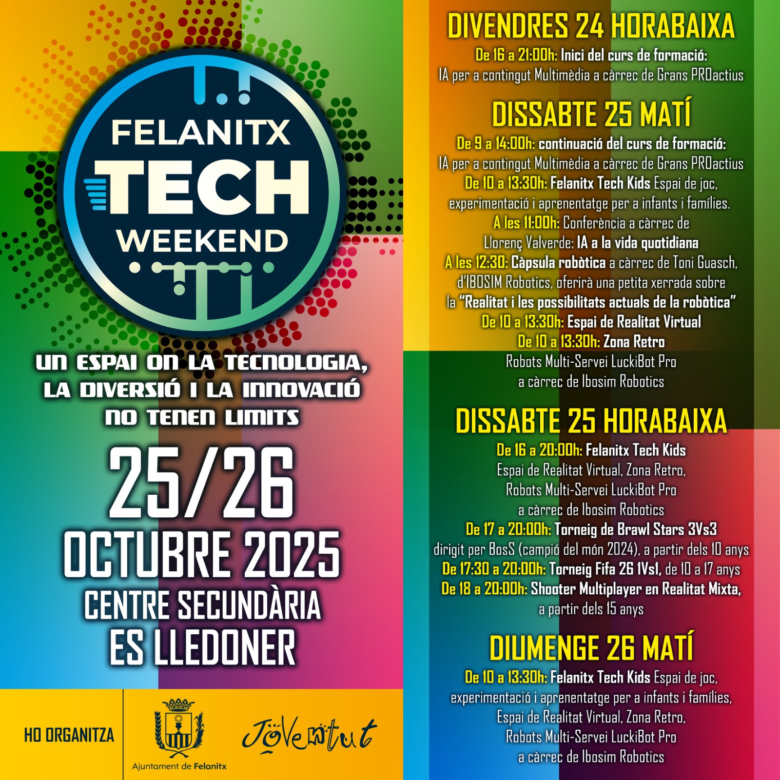 El 25 i 26 d’octubre Felanitx tornarà a oferir una nova edició de la Felanitx Tech Weekend: un espai d’intercanvi i cooperació per al foment de la cultura de la innovació tecnològica i digital.